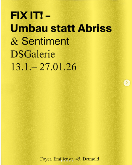 Arbeiten aus den Studiengängen Bachelor Architektur, Innenarchitektur und Stadtplanung, sowie Master Innenarchitektur Raumkunst, Master of Integrated Design und Master of Integrated Architectural Design werden in wechselnden Ausstellungen in der DSGalerie im Foyer der Detmolder Schule für Gestaltung, dem Fachbereich 1 der Technischen Hochschule Ostwestfalen-Lippe präsentiert. Erläuterung der Aktionsfläche / Aktionen in DS Galerie....